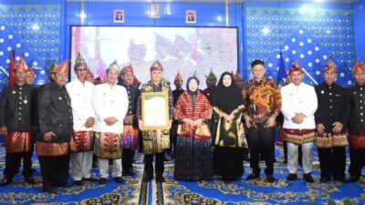 Pj Gubernur Agus Fatoni dan Pj Ketua TP PKK Sumsel Tyas A. Fatoni Diberi Gelar Adat oleh Kabupaten OKU Timur