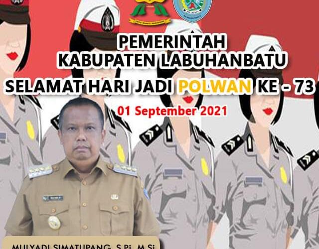 PIRNAS.COM | LABUHAN BATU – Pejabat Bupati Labuhan Batu, Mulyadi Simatupang, beserta jajaran pemkab Labuhan Batu turut mengucapkan selamat Hari Ulang Tahun buat Polisi Wanita yang ke-73. 01 September 2021.