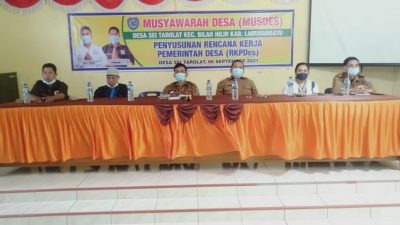 PIRNAS.COM | LABUHANBATU – Pejabat Desa sei tarolat Lenswiking Pandiangan SH, melaksanakan Musyawarah Desa tentang Rencana pembangunan Kerja Desa (RKPDes) untuk Tahun 2022 di Desa Sei Tarolat, kecamatan Bilah hilir, Kabupaten Labuhan batu, sumatera, senin ( 6/9/2021), sekitar pukul 09.45 wib
