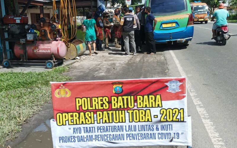 PIRNAS.COM | BATU BARA – Acara pelaksanan Ops di Jalinsum Lima Puluh Cinta Dame Kab. Batu Bara melaksanakan Operasi PATUH, 2021 oleh Sat Lantas Polres Batu Bara dengan Instansi Terkait yang dipimpin oleh Kanit Regident Sat Lantas Polres Batu Bara, IPDA ELON SITINJAK, SH, selaku Kasubsatgas Gakkum Ops Patuh Toba Polres Batu Bara dan didamping, Kasat Gas Gakkum Ops Patuh Kasat Lantas AKP ERIDAL FITRA, SH, MH, dengan sasaran masyarakat yang melanggar Prokes (tidak memakai masker dan jaga jarak) serta melakukan himbauan terkait Prokes Covid 19 dan Kepatuhan Tertib Berlalu Lintas sbb.
