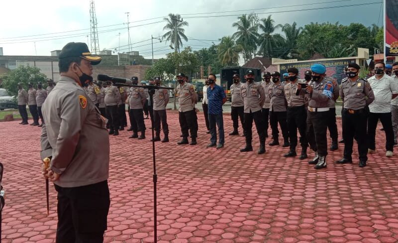 “mulai malam ini sampai hari Minggu kita tidak ada yang libur,” sebutnya. Semua harus bersiaga melayani dengan baik seluruh masyarakat kususnya yang ada di wilaya hukum kita. Kemudian untuk pengamanan para personil kepolisian disarankan jangan ada yang sedirian, minimal dua orang agar bisa saling membantu,