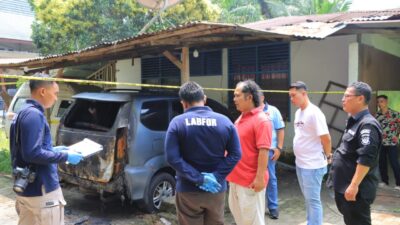 Pirnas.com | Labuhanbatu – Terkait kasus dugaan Pembakaran/Kebakaran Kendaraan Ketua LPA Labuhanbatu, Polres Labuhanbatu bersama Bid Labfor Polda Sumatera Utara lakukan Olah TKP, Minggu (08/10/2023).