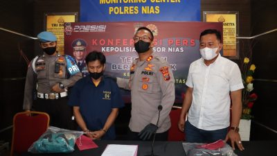 Polres Nias Press Release Penangkapan Terduga Pelaku Pembunuhan di Desa Saitagaramba Kab. Nias