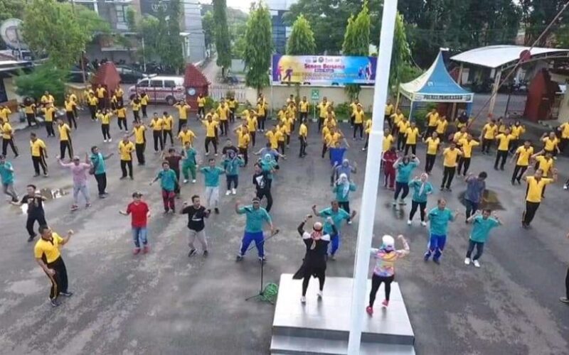 PIRNAS.COM & PIRNAS.ORG | PAMEKASAN – Jajaran Polres Pamekasan bersama Pers yang tergabung dalam group wartawan Mitra Polres Pamekasan di Kabupaten, sebelum kegiatan donor darah, Wakapolres Kompol Moh Asrori Khadafi, memimpin apel pagi serta dilanjutkan dengan senam bersama di halaman Mapolres Pamekasan, Madura, Jawa Timur, Sabtu (08/02/2020).