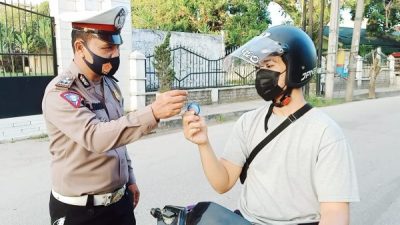 Kegiatan pemberian reward gantungan kunci kepada pengendara yang mematuhi peraturan lalu-lintas setiap melaksanakan aktivitas diluar rumah agar mematuhi Peotokl Kesehatan ( Prokes ) memakai Masker, menjaga jarak ditempat kerumunan, rajin mencuci tangan dengan sabun dan air yang mengalir, rajin berolahraga, serta menjaga kebersihan lingkungan tempat tinggal berlangsung lancar dan baik. , ” Ujarmya.
