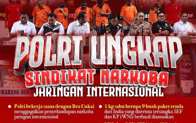 Polri melalui Ditresnarkoba Polda Metro Jaya berhasil mengungkap upaya penyelundupan narkoba jaringan internasional