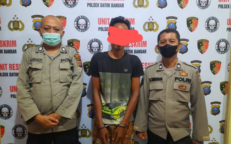Dia ditangkap atas laporan Polisi Nomor LP / B / 77 / VII / 2022 / SPKT / Polsek DTB / Polres T. Balai / Polda Sumatera Utara Tanggal 21 Juli 2022.