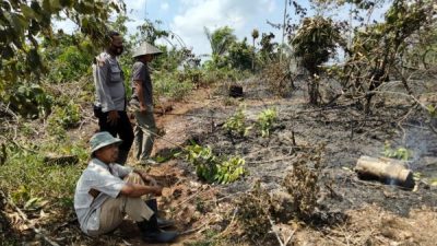 PIRNAS.COM | LABURA – AIPDA Poniran selaku Bhabinkamtibmas Polsek Kualuh Hulu terjun langsung ke lapangan memadamkan kebun milik Masyarakat yang terbakar di Desa Kuala Beringin.