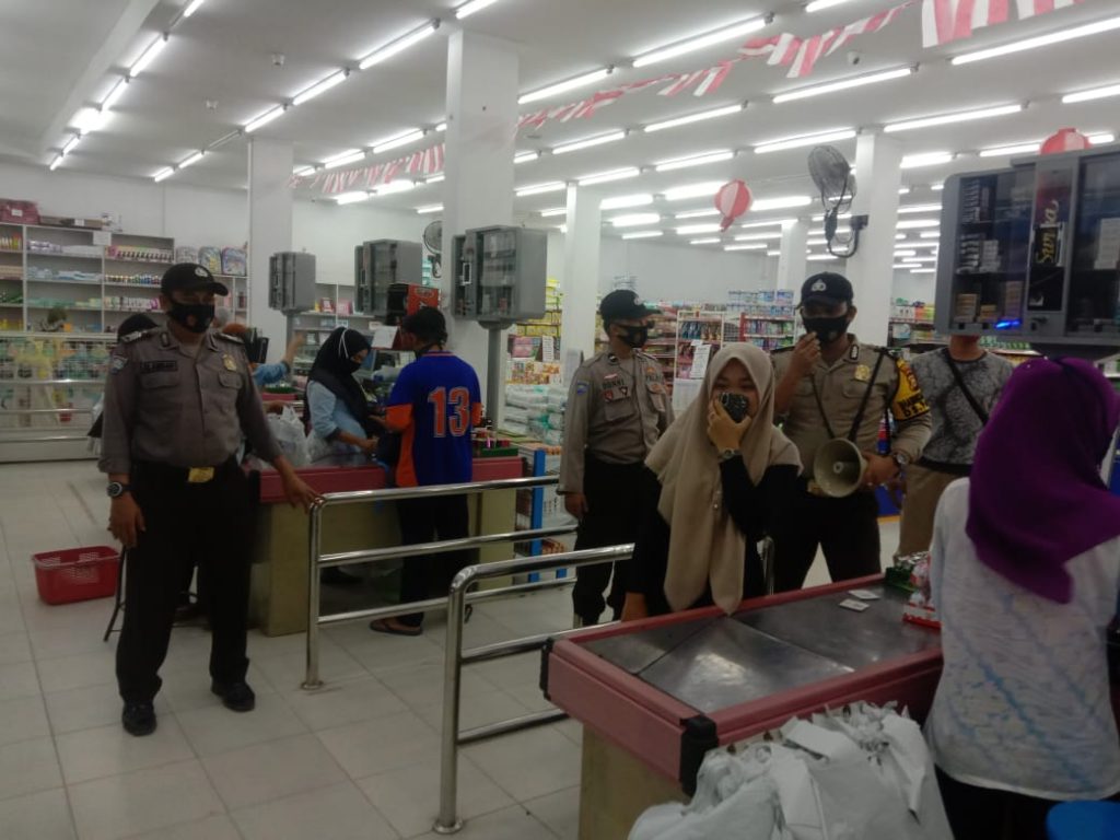 “Dengan menggunakan alat pengeras suara TOA, Regu ini menghimbau masyarakat agar selalu memakai masker jika keluar rumah, jaga jarak saat berbelanja, rajin cuci tangan setelah melakukan kegiatan dan biasakan hidup bersih dan sehat di lingkungan masing-masing”, Jelas Kapolsek.