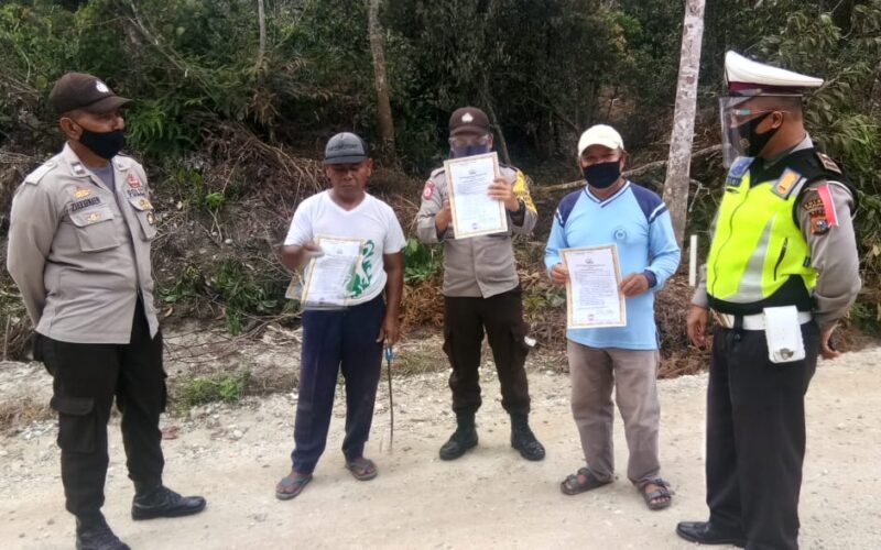 Selain memberikan himbauan larangan pembakaran hutan dan lahan tim ini juga memberikan sosialisasi tentang ancaman hukuman bagi pelaku pembakaran hutan dan lahan.