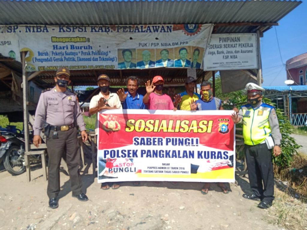 Selain itu Polsek Pangkalan Kuras melakukan sosialisasi tentang Saber Pungli kepada anggota SPSI (Serikat Pekerja Seluruh Indonesia) kelurahan Sorek Satu.