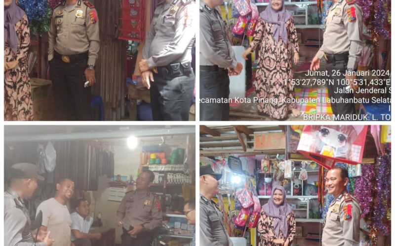 Pirnas.com | Polres Labuhanbatu Selatan – Dalam sebuah upaya untuk meningkatkan keamanan dan keterlibatan masyarakat, Polsek Kotapinang menggelar kegiatan patroli dialogis di Pasar Tradisional Kota Pinang, Kabupaten Labuhanbatu Selatan. Jumat (26/1/2024).