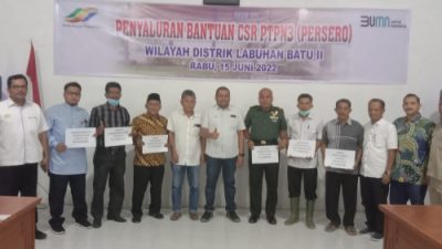 PIRNAS.COM | LABUSEL – Pada triwulan-I Tahun 2022 ini PTPN III (Persero) Distrik Labuhan Batu II (DLAB2) kembali menyalurkan Bantuan Program Bina Lingkungan yang merupakan tanggung jawab sosial lingkungan usulan dari Kebun wilayah Distrik Labuhan Batu II (DLAB2) mencakup desa-desa sekitar operasional perusahaan pada tanggal 15 Juni 2022 bertempat di Aula PTPN III Distrik Labuhan Batu II.
