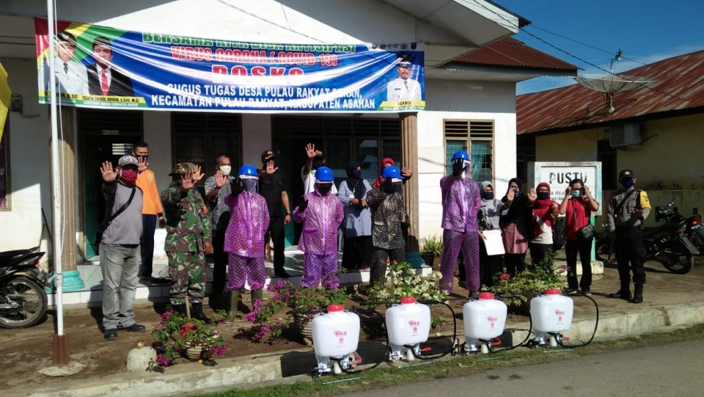 Sementara, Tim Relawan lainnya membagi-bagikan masker kepada para warga tiga dusun tersebut dan sekaligus bersama Tim medis Puskesmas Pulau Rakyat melakukan pengecekan suhu tubuh dengan alat termometer tembak. Aksi dan kegiatan dari Tim relawan lawan Covid-19 yang merupakan Gugus Tugas berskala lokal desa yang diketuai oleh Kepala desa Suyadi bersama Babinsa Serda H Marpaung dari Koramil 16 Pulau Rakyat, Bhabinkamtibmas Aipda Refno dari Polsek Pulau Raja dan Pendamping desa Wellar ST selaku Mitra dilakukan mulai 08.40 WIB pagi dan berakhir sebelum pukul 12.00 WIB.