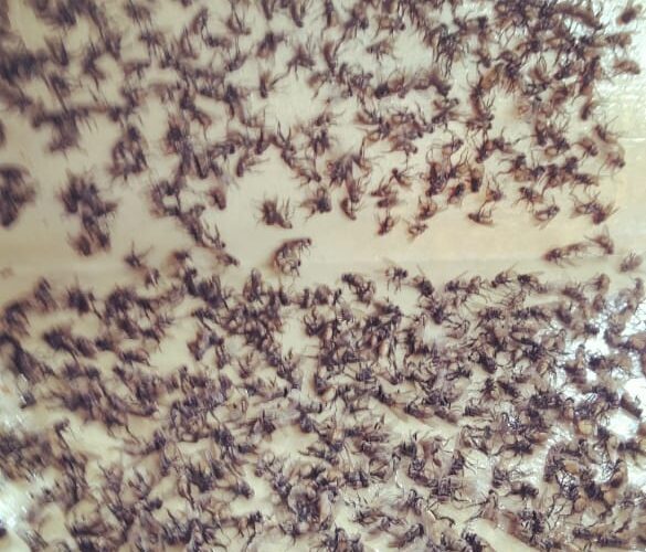 “Lalat-lalat ini berasal dari Kandang Ayam potong itu, setiap kali mereka panen, suasana seperti ini selalu terjadi” kata salah satu warga.