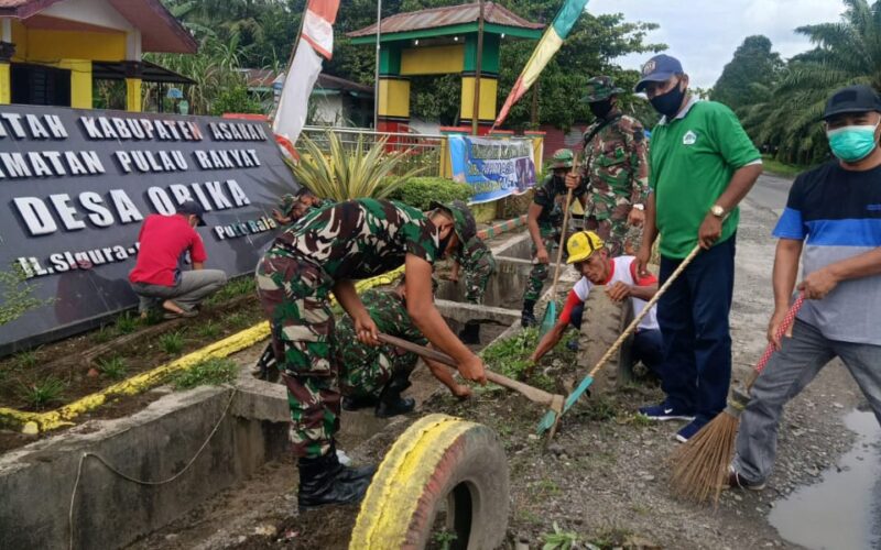 PIRNAS.COM | ASAHAN – Dalam rangka HUT ke 72 Infanteri TNI AD TA. 2020 Personil Kompi bantuan 126 Kalacakti Pulau raja melaksanakan kegiatan Karya bakti di Desa Orika, Kec. Pulau Rakyat, Kab. Asahan, bersama sama dengan warga pada jumat (18/12/2020) dengan Tema INFANTERI PROPESIONAL KUAT BERSAMA RAKYAT.