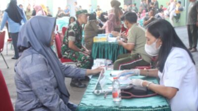 PIRNAS.COM | Blitar – Dalam rangka menyambut peringatan HUT ke-78 TNI Tahun 2023, Kodim 0808/Blitar bersama Polkes 05.09.03 Blitar dan PMI Kab.Blitar, menggelar kegiatan donor darah, pengobatan gratis dan bakti sosial, bertempat di Kodim 0808 Jl. A. Yani No. 06 Kel/Kec. Kepanjenkidul Kota Blitar, Minggu (24/9/2023).