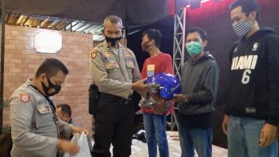 Usai melakukan penyuluhan Kanit Binpolmas Polres Pamekasan berikan Sarana Kontak berupa helm untuk pengunjung Cafe Legenda yang menjawab pertanyaan yang diajukan oleh Kanit Binpolmas Polres Pamekasan.