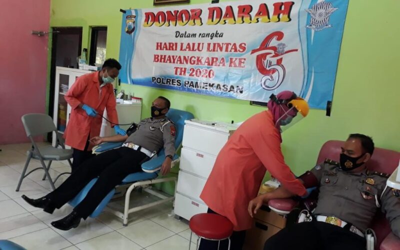 PIRNAS.COM | PAMEKASAN – Dalam rangkaian memperingati Hari Lalu Lintas Bhayangkara ke-65, Satuan Lalulintas (Satlantas) Polres Pamekasan menggelar kegiatan bakti sosial donor darah di Kantor Palang Merah Indonesia (PMI) Kab. Pamekasan, Kamis (17/9/2020) pagi.