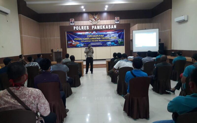PIRNAS.COM | PAMEKASAN- Satlantas Polres Pamekasan menggelar kegiatan Pelatihan Program Polri Peduli Keselamatan 2020 Cegah Covid-19 Tahap III, yang dilaksanakan di Gedung Bhayangkari, Polres Pamekasan, Selasa (14/7/2020).