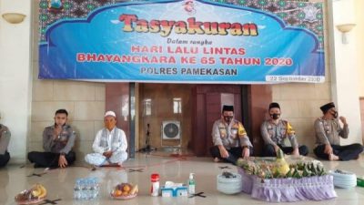 PIRNAS.COM | Pamekasan – Satlantas Polres Pamekasan menggelar Tasyakuran dan Do’a bersama dalam Rangka Hari Lalu Lintas Bhayangkara ke 65 Tahun 2020 bertempat di Masjid Baitul Amin Polres Pamekasan. Selasa (22/9/2020) pagi.