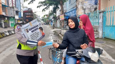 Satlantas Polres Tanjungbalai Berikan Masker Gratis Pada Masyarakat Pengguna Jalan