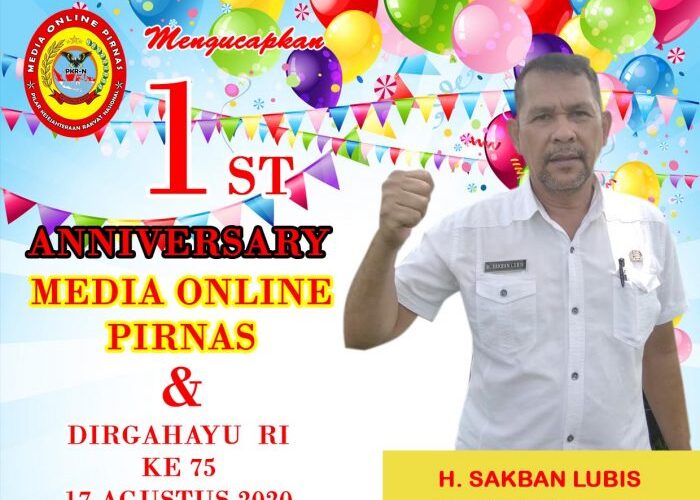PIRNAS.COM | ASAHAN – Sekertaris Camat Pulau Rakyat Kab. Asahan H. SAKBAN LUBIS turut juga berpartisipasi mengucapkan Selamat Hari Ulang Tahun Media (PIRNAS) Pilar Kesejahteraan Rakyat Nasional yang pertama dan Dirgahayu Republik Indonesia yang Ke – 75 tahun 2020.