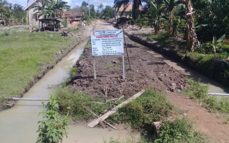 SELAIN PENYALURAN BLT, DANA DESA PASE DUA KAMPUNG SUMBER SARI DIGUNAKAN UNTUK BANGUN SALURAN IRIGASI