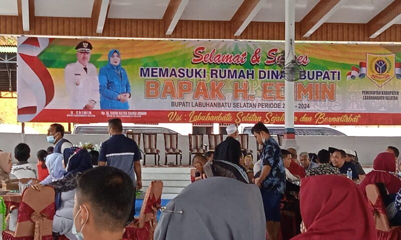 PIRNAS.COM | LABUSEL – Tiga bulan bertugas sebagai bupati kabupaten Labuhanbatu Selatan H Edimin, Resmi memasuki rumah dinas yang berada di desa Sosopan Kec. Kotapinang kabupaten Labuhanbatu Selatan (Labusel), Minggu ( 10/10/2021 ).
