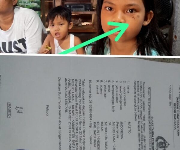 PIRNAS.COM | BATU BARA – R, siswa Kls V Sekolah Dasar (SD) diduga dianiaya oknum Guru UPTD 05 Talawi Kabupaten Batu Bara, membuat laporan ke Polisi No: STTLP/B/105/III/2023/SPKT/POLRES BATU BARA/POLDA SUMATERA UTARA.