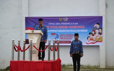Post Views: 20 BINJAI-SUMUT || PIRNAS.COM –Lembaga Pemasyarakatan (Lapas) Kelas IIA Binjai melaksanakan Upacara Peringatan Hari Pahlawan Nasional Tahun 2025 di Lapangan Upacara Lapas Binjai, Senin (10/11/2025). Upacara berlangsung khidmat dan diikuti oleh seluruh Pejabat Struktural, JFT,JFU, & CPNS Lapas, serta perwakilan Warga Binaan. Kepala Lapas Binjai, Wawan Irawan , bertindak sebagai Inspektur Upacara. Dalam kesempatan …