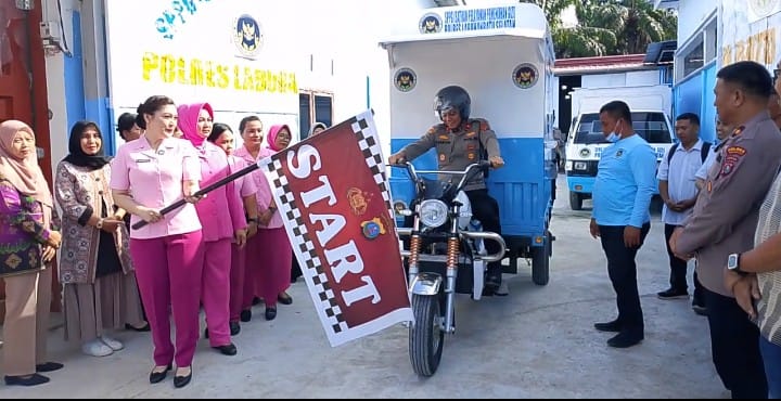 Penyaluran dimulai sejak pukul 10 pagi, menggunakan kendaraan becak motor box yang dikawal langsung oleh Wakapolres Kompol R. Samosir.
