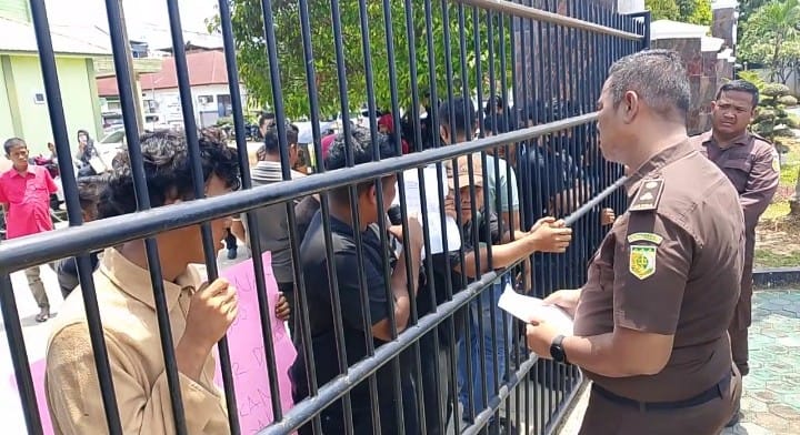 Usai berorasi di Dinas Pendidikan, sekitar pukul 14.00 WIB massa melanjutkan aksi ke Kantor Kejaksaan Negeri Labuhanbatu Selatan di Jalan Istana, Kotapinang.