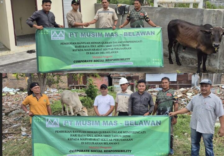 MEDAN || PIRNAS.COM – Sambut Idul Adha 1445 H, PT Musim Mas Belawan terus menjalankan kegiatan sosial melalui Corporate Social Responsibiliti (CSR) menyerahkan 2 ekor sapi di dua Kelurahan Kecamatan Medan Belawan Sumatera Utara, Jumat (06/06/2025).