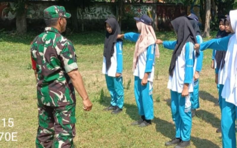 Tanamkan Disiplin Di Sekolah, Babinsa Pos Selopuro Latih Peraturan Baris Berbaris