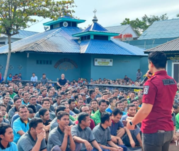 Pirnas.Com | Batu Bara – Kepala Lapas Labuhan Ruku Alexander Lisman Putra memberikan pengarahan kepada ribuan warga binaan Lembaga Pemasyarakatan (Lapas) Kelas IIA Labuhan Ruku, di Lapangan Blok hunian Lapas, Jumat (25/10/2024).