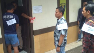 Para tersangka yakni dua oknum anggota TNI berinisial I dan H yang datang terlebih dulu. Kemudian disusul tersangka P dari sipil, dan oknum polisi berinisial S dan datang terakhir.
