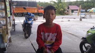 Di hari yang sama dan waktu yang sama, pucuk dicinta ulam tiba. Dua anak dari yang tiga tersebut terlihat membeli jajanan ke salah satu warung yang terletak tak jauh dari SPBU dundangan.