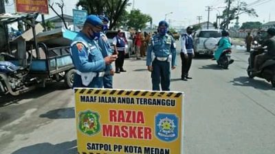 PIRNAS.COM | MEDAN – Untuk menegakkan Peraturan Wali Kota (Perwal) Medan No 11 Tahun 2020 tentang Karantina Kesehatan, dalam Rrngka Percepatan Penangangan Covid-19. Salah satu pasal dalam Perwal ini adalah mewajibkan setiap orang menggunakan masker jika berada di luar rumah atau di tempat-tempat umum. Perwal ini juga mengatur sanksi bagi warga yang tidak memakai masker, yang salah satu diantaranya adalah penahanan kartu identitas.