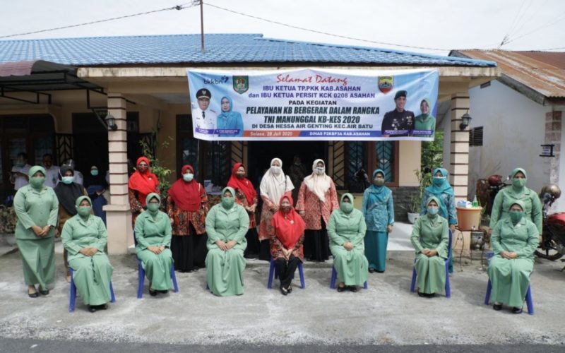 PIRNAS.COM | ASAHAN – Ketua TP PKK Kabupaten Asahan Ny. Hj. Titiek Sugiarti Surya menghadiri Pelayanan Keluarga Berencana (KB) dalam rangka TNI manunggal KB-Kesehatan 2020 yang diselenggarakan di Puskesmas Hessa Air Genting Kecamatan Air Batu, Kabupaten Asahan, Selasa (28/07/2020).