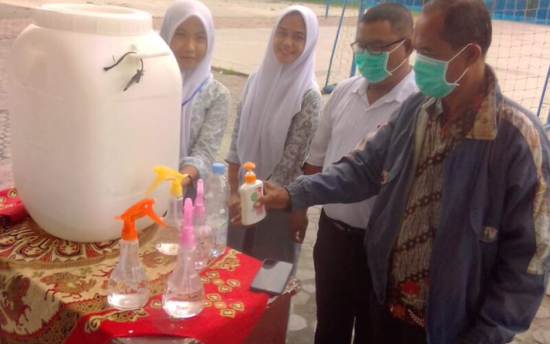 “Untuk masker kami sudah usahakan, tapi masker tak ada dijual manapun, begitu juga air busa pencuci tangan hand sanitizer juga habis di pasaran, jadi terpaksa sabun hand sanitizer kami buat sendiri di laboratorium sekolah, kalau masker tak bisa kami buat sendiri karena itu buatan pabrik”, terang kepala sekolah SMA Hangtuah Belawan tersebut.