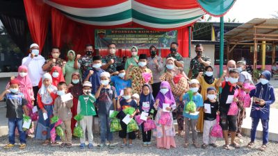 Kegiatan komsos Dandim 0209/LB dengan komponen masyarakat diwarnai dengan pemberian tali asih kepada anak yatim dan kaum duafa warga masyarakat disekitaran Kelurahan Aek Kota Batu.
