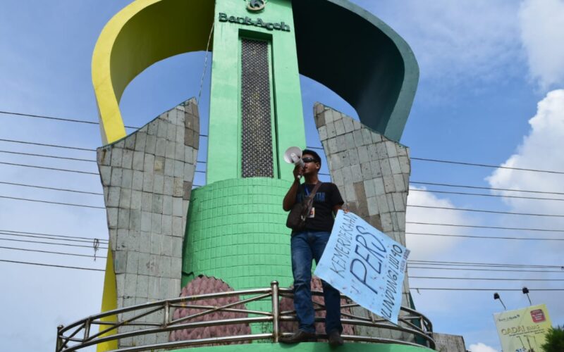 PIRNAS.COM & PIRNAS.ORG | SUBULUSSALAM | Sejumlah wartawan dari berbagai media & Lembaga swadaya masyarakat(LSM) melakukan aksi unjuk rasa di Tugu BPD jln.Runding Kota Subulussalam, Senin (20/1/2020).