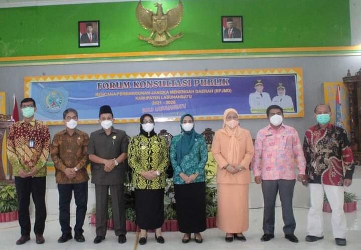 PIRNAS.COM | LABUHANBATU – Wakil Bupati Labuhanbatu Hj. Ellya Rosa Siregar, S. Pd, MM, hadiri forum Konsultasi Publik Rencana Pembangunan Jangka Menengah Daerah (RPJMD) kabupaten Labuhanbatu 2021-2026 di Ruang Data dan Karya Pemkab Labuhanbatu, Kecamatan Rantau Selatan Kamis (14/10/2021).