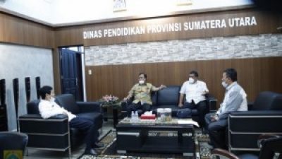 PIRNAS.COM | PAKPAK BHARAT – Wakil Bupati Pakpak Bharat Sumut, H. Dr Mutsyuhito Solin MPd didampingi Plt. Kepala dinas Pendidikan Kabupaten Pakpak Bharat Mordehai Orba S Manik, SH, MH bertemu dengan Kepala Dinas Pendidikan Provinsi Sumatera Utara Prof. Syaifuddin Ph.D di Kantor Dinas Pendidikan Sumatera Utara (27/03/2021).
