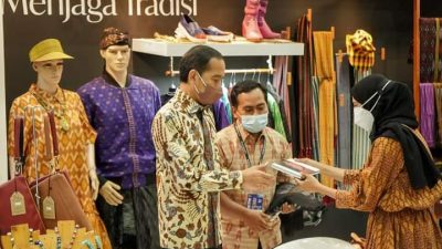 Saya mengajak masyarakat untuk mencintai produk-produk dalam negeri utamanya produk-produk kerajinan, ini akan memajukan para pengrajin kita, memajukan UMKM kita,” ujar Jokowi.