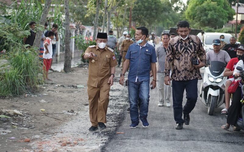 PIRNAS.COM | Tanjungbalai – Walikota Tanjungbalai H. Waris Tholib, S. Ag melakukan peninjauan pemeliharaan perbaikan badan jalan Singosari di Kelurahan Gading dan Kelurahan Pahang, Kecamatan Datuk Bandar Kota Tanjungbalai. Selasa sore (3/8/2021).