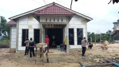 PIRNAS.COM | ROHIL TANAH PUTIH – Warga Desa Rantau Bais, Kecamatan Tanah Puitih, Kabupaten Rokan Hilir, bersama Personil Polsek Tanah Putih bergotong royong membangun Pos Bhabinkamtibmas Rantau Bais.