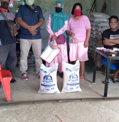 PIRNAS.COM | LABUSEL- Penyalur Program Keluarga Harapan (PKH) Bantuan Pangan Non Tunai (BNPT) Marwan Hasibuan bersinergi untuk bekerja sama dengan Wartawan serta saling Mmengingatkan kepada Masyarakat khususnya peserta yang memiliki PKH himbara untuk sama-sama menerapkan porotokol kesehatan berupa masker dan hand sanitijer, di saat mengambil beras bantuan Pemerintah melalui PKH, Selasa (23/6/2020), dusun Teluk Pinang Desa Asam Jawa Kecamatan Torgamba Kabupaten Labuhan Batu Selatan Sumatera Utara.