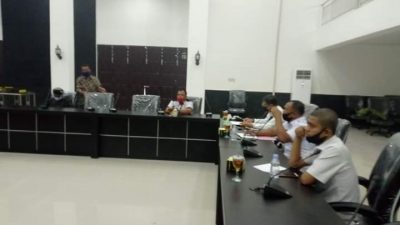 RDP dipimpin langsung Ketua DPRD Labura Drs Ali Tambunan, dengan menghadirkan masyarakat Halimbe, Camat, Kades, serta Korban, diruang paripurna gedung DPRD Labura, Rabu (22/4/2020).